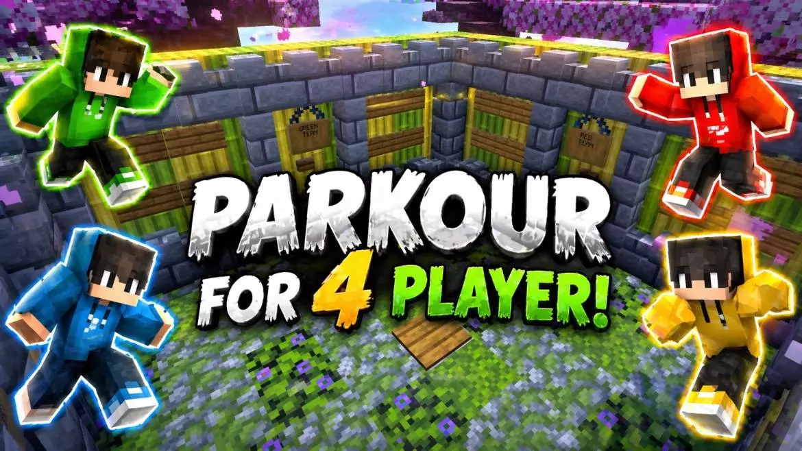 PARKOUR FOR 4 PLAYER - download the map and complete the parkour challenge with a friend to see who is faster.