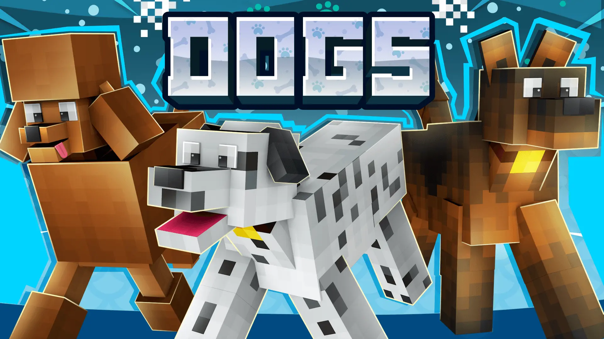 Dogs Mod — a companion-focused Bedrock addon that adds 6 custom dog variants you can tame with bones, breed, and bring along to help in fights across almost any biome.