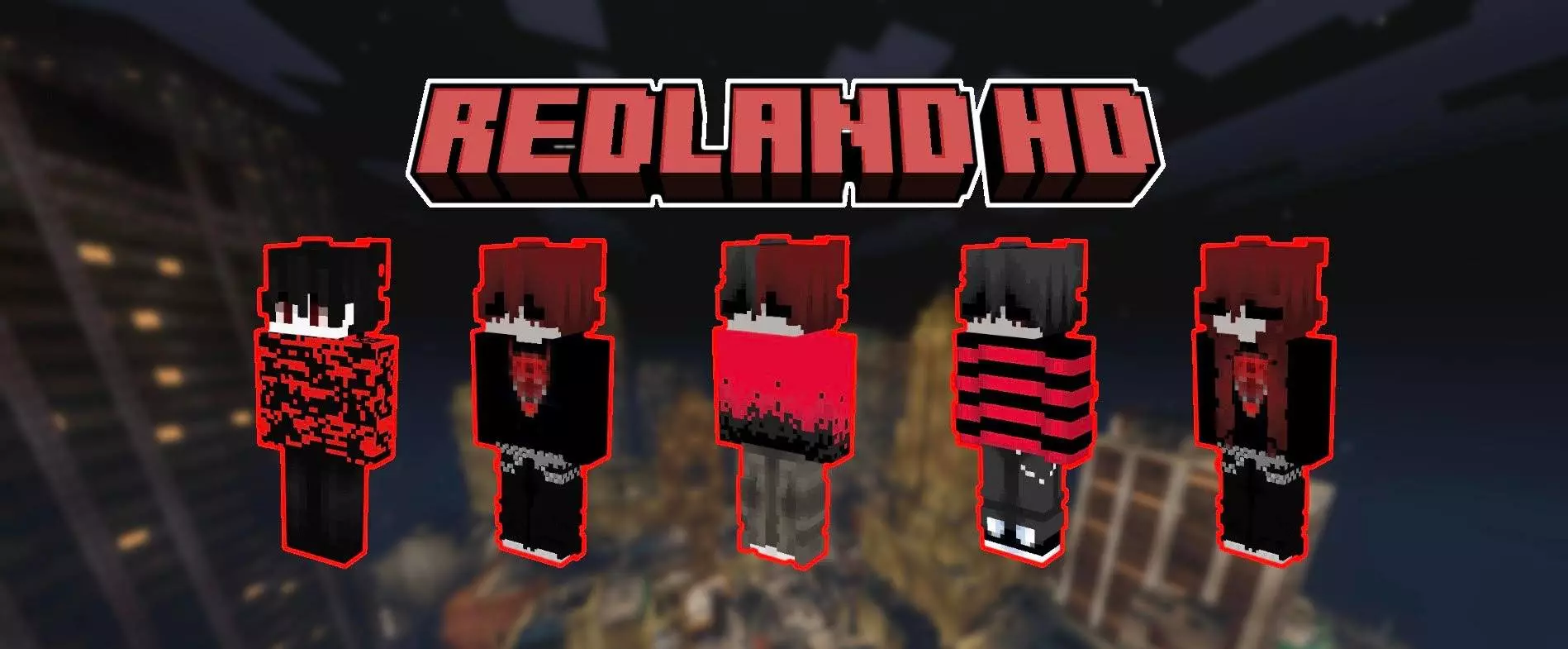 RedLand HD Skin Pack — seven HD skins dripping with red-and-black emo energy and scarlet-magic attitude, built for players who want their character to look sharp, moody, and unapologetic.