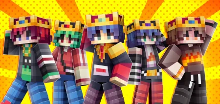 Crowned Fashion Teens Skin Pack — eight crowned teen skins that bring that “fresh outfit + flex crown” vibe to Minecraft, perfect for servers, roleplay, and showing up to spawn looking like the main character.