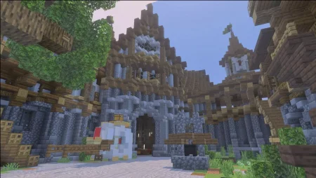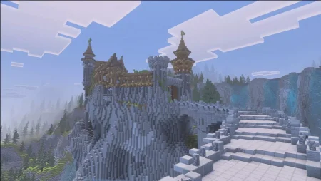 This kind of map is also perfect for multiplayer hangouts and roleplay, because it gives your group a natural meeting point. “Meet at the waterfall castle” is way more memorable than “meet at coordinates by the plains.” It’s also a great location for duels or chase games with friends, because the vertical terrain makes fights and movement feel chaotic in a fun way—people will try to out-position each other on ledges, cut off routes, or escape by dropping into the waterfall. Old Fallen Castle Map is simple on paper—medieval/fantasy castle, giant waterfall cliff—but that combo is exactly what makes it work in Minecraft Bedrock/MCPE: big visual landmark, strong theme, and terrain that makes exploring feel like an adventure instead of a flat run.