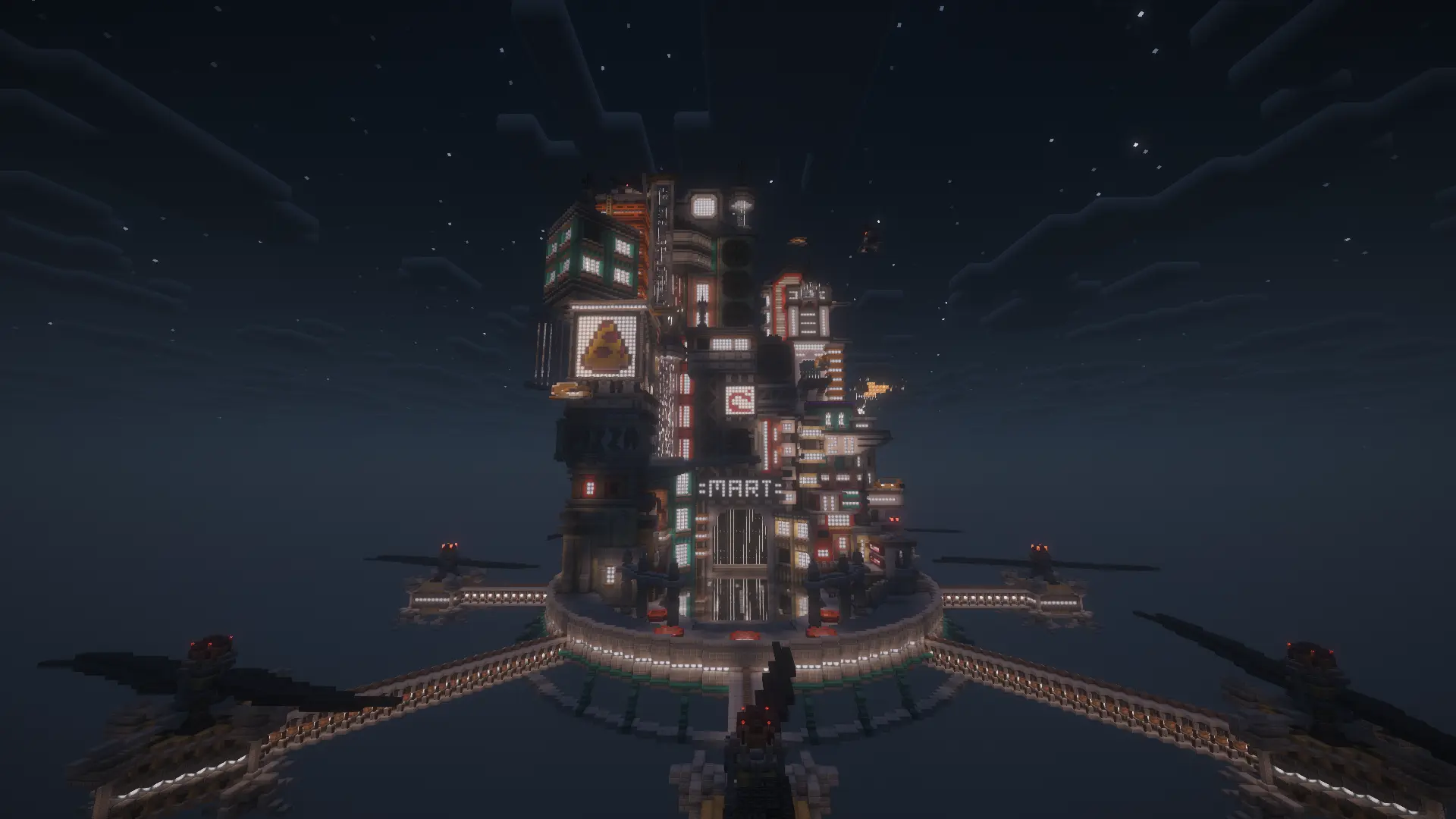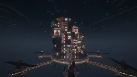 Cyberpunk Island City is a Minecraft map with a cool city in the sky in a cyberpunk style.