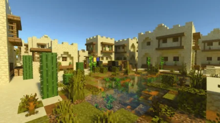 If you flip cheats on, Desert Village Map also becomes a chill creative playground. You can keep the original layout and just add more houses, towers, or walls around the edges, or you can completely reshape the place into your own style while using the existing builds as a base. On Realms or a server, this map works great as a shared hub where each player grabs a building or two and personalizes it, then everyone connects their spots with paths, markets, or defense walls. Because achievements can be kept on in normal play, it is also a solid world to start a long survival run in, especially if you enjoy that desert aesthetic but don’t want to roll seeds for hours searching for the “perfect” spawn.