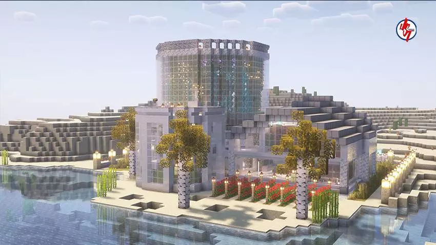 One of the best quality-of-life details is the spawn point being set inside the house. That’s huge for quick starts and for casual play, because you load in and you’re already safe and positioned. No wandering around trying to find the build, no “where am I supposed to go,” just instant gameplay. The creator also points out it’s best enjoyed with your favorite texture or shader pack, which fits the glass theme perfectly—glass builds look extra clean when lighting and reflections feel crisp, especially in a desert environment where the sun and sky are doing most of the work.