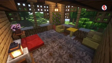 The house is fully built inside and out, so you’re not being handed a shell. You spawn into something complete, with an interior you can actually live out of and an exterior that already looks finished in the landscape. That’s perfect for players who hate the early-game cycle of building temporary junk and then tearing it down. It also comes packed with useful items, which makes this map feel like a smooth start rather than a grindy reset. Instead of burning your first hour doing the same boring setup, you can jump straight into plains survival priorities: set up farms, start a mine entrance, map out where you want animal pens, and begin expanding your base footprint.