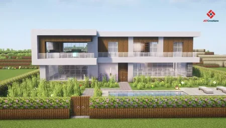 The map also suggests using your favorite texture or shader pack, which fits a modern build on an island perfectly. Modern houses look way better when lighting is clean and water and sky visuals pop, so the whole “cozy beach-island base” vibe hits harder. Survival Modern House #100 Map is a solid survival launchpad with a finished modern home, starter items, village atmosphere, and spawn already handled—basically everything you want when you just want to jump into Minecraft Bedrock survival and start building a real world immediately.