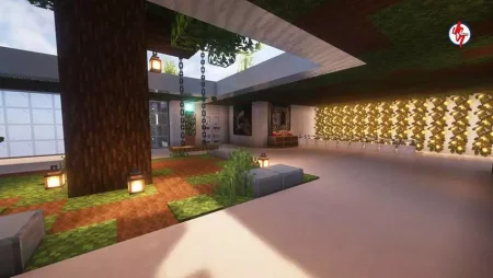 The map also encourages using your favorite texture or shader pack, which fits a modern island build perfectly. Clean lighting and nicer water visuals can make the house feel even more like a real survival home you’d want to keep upgrading over time. Survival Modern House #93 Map is basically a ready-to-play survival launchpad: modern base, island setting, useful starter items, village vibes nearby, and spawn already handled so you can focus on building your world instead of setting it up.