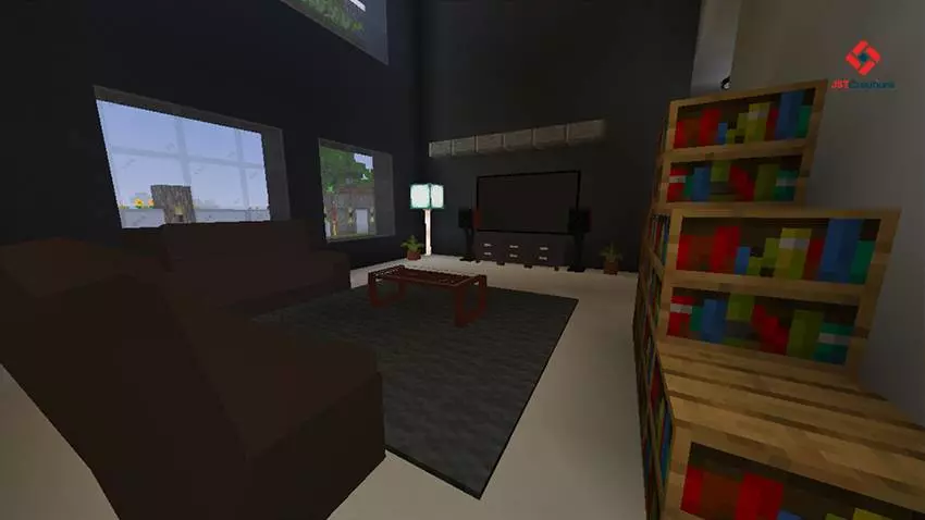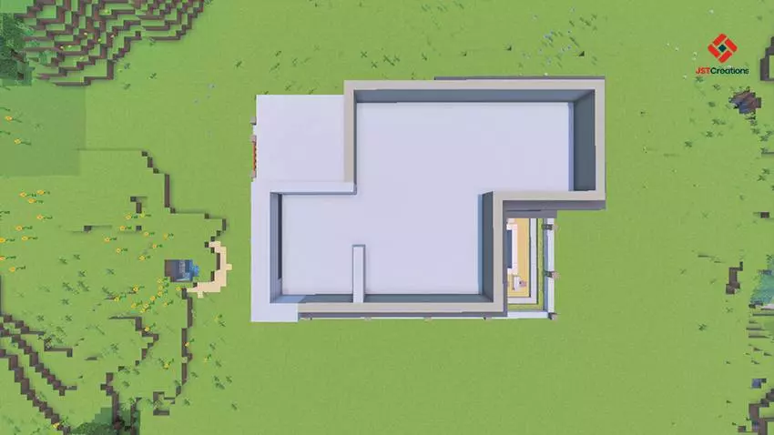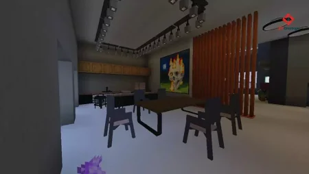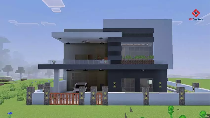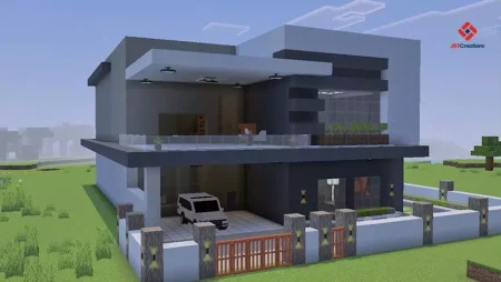 Modded Modern House #8 (With Furnitures) Minecraft map with a house with furniture, a car in the yard. It all works with the help of mods.