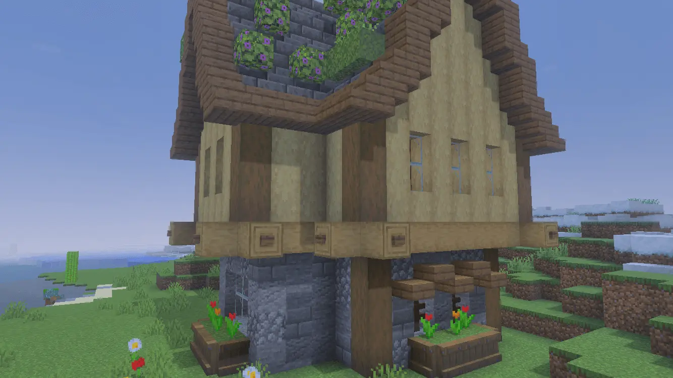SNOWY STARTER HOUSE - a map with a house in the winter period and all the necessary equipment.