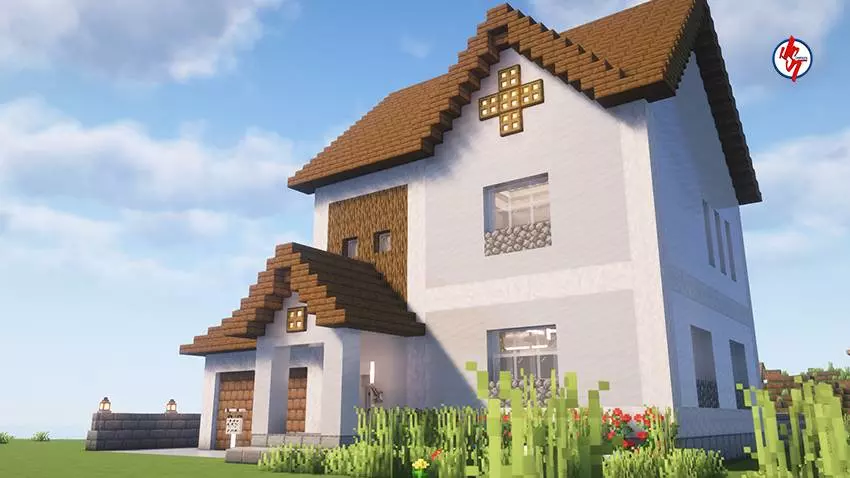 The closest village turns this into a smooth progression hub. Boat there at dawn, trade for basics, and be back by sundown without risking a gear dump. If you set a lantern line or a short slab bridge, it becomes a predictable commute even when weather hits. The house itself plays nicely with that loop: the doorway opens toward the most direct path to the shoreline, so you’re never zigzagging over flower beds or bumping into fences. On your first evenings, focus on perimeter lighting rather than expanding rooms; the island’s shape lets you lock down spawns fast, and once the yard is safe, you can mine or fish without constantly looking over your shoulder. If phantoms start showing up, move to the upstairs corner before sleep; the roofline there gives you a clear angle to tag them and still duck inside.