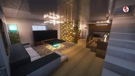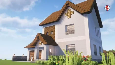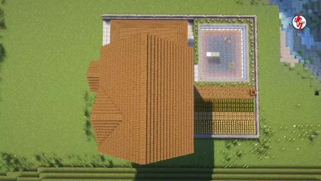 Because the interior is fully furnished, you won’t waste time improvising storage or workstations. Keep your ore chest near the front door so you can dump and go when you return from the village, and tuck valuables one room deeper in case a creeper sneaks into the entry. The shoreline is perfect for early farms. Sugarcane along the water grows while you run village trades, and a small wheat patch near the porch keeps you fed without dragging the build out into farmland sprawl. For Nether prep, place the portal at the far edge of the lot so the hum stays away from the bedroom and your villagers won’t wander toward it later. On Realms or SMP, this map shines as a calm home base: one player handles fishing and crops, another runs trades, and a third mines inland, all converging back at a house that keeps the night simple—doors locked, gear sorted, and achievements popping the honest way.