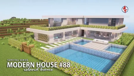 Survival Modern House #88 Map — Day-one modern on a quiet island, built to sprint, trade, and swim laps—with Achievements On from the first click.