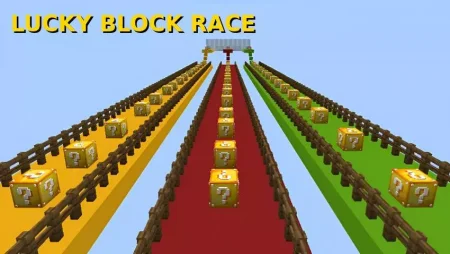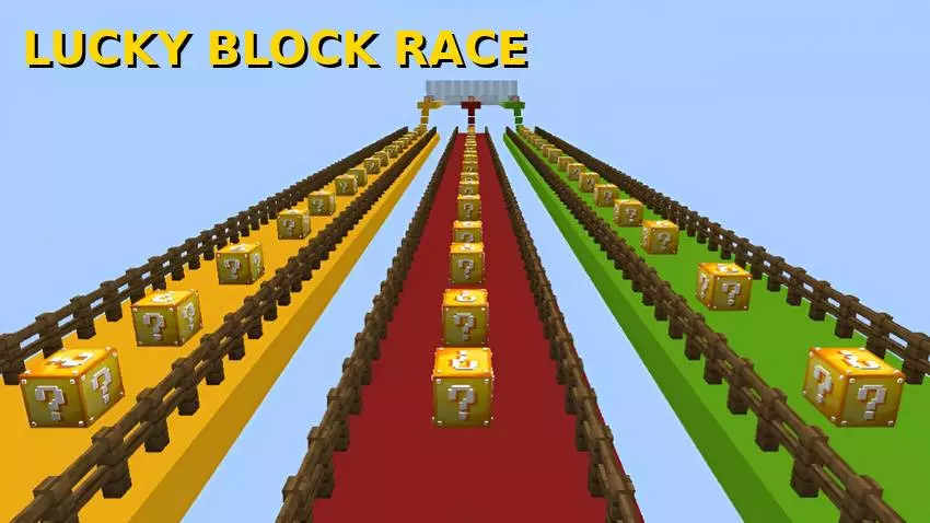 LUCKY BLOCK RACE TRIO Map — a chaotic lucky block sprint where every break can bless you or ruin you, and the only goal is surviving the mess long enough to hit the finish first.