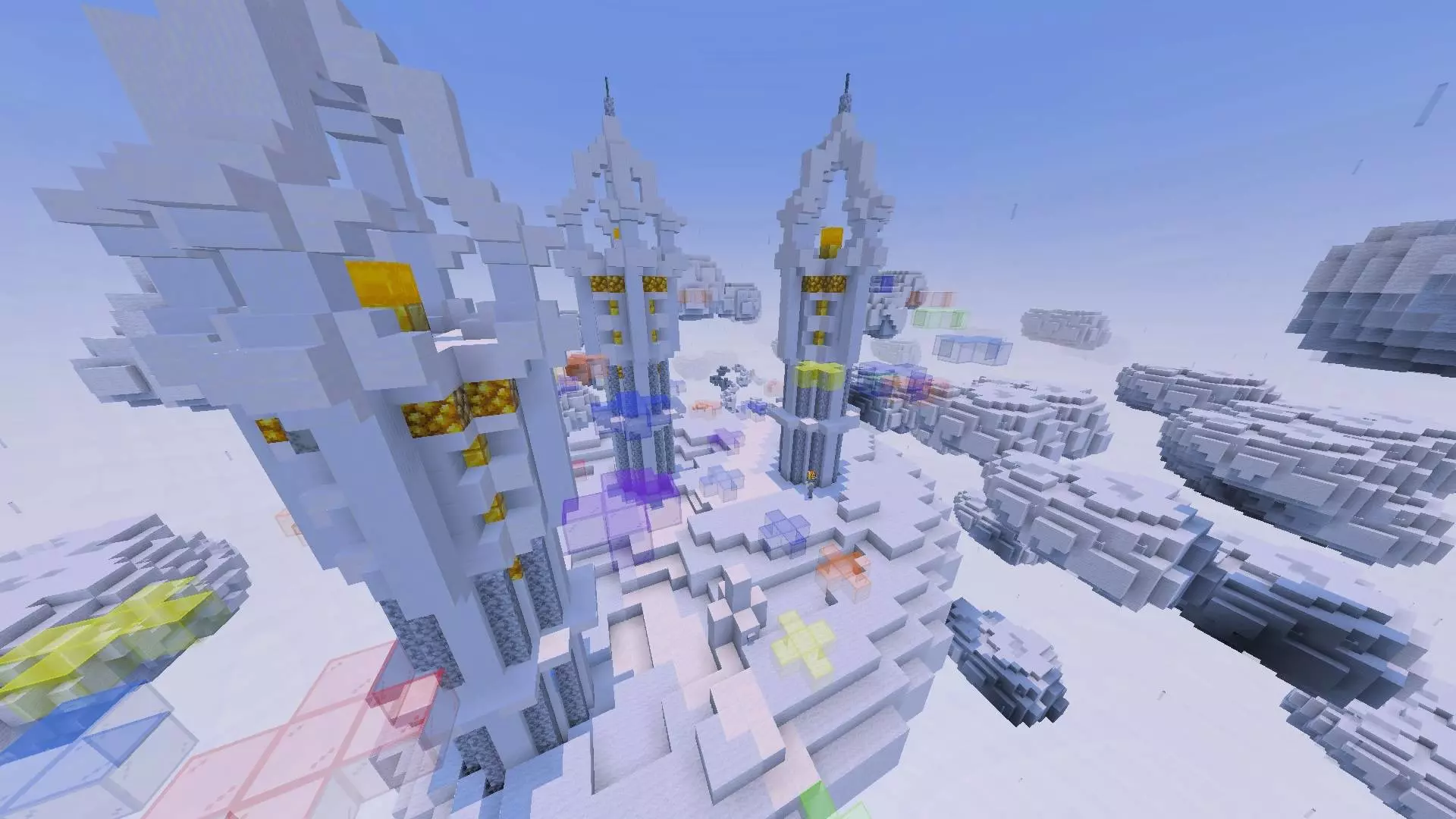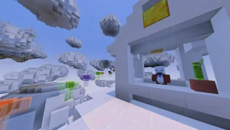 What makes Sky Parkour 1/4 Map more fun than a basic parkour course is all the extra stuff layered around the jumps. You can hunt for collectibles hidden throughout the map, and those little detours are where the sky world feels alive instead of empty. NPCs are there too, and they’re not just decoration. You can actually talk to them for help, clues, and side missions, which is perfect if you like having a reason to explore beyond the fastest line. If you’re playing on MCPE and you want a map that doesn’t demand sweaty movement right away, this one keeps it approachable while still rewarding players who pay attention.