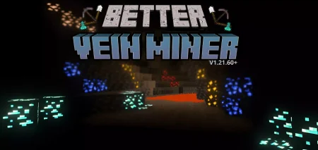 Ultimate Better Vein Miner Mod — pop one ore block and the whole vein collapses instantly, so mining in Minecraft Bedrock stops feeling like a second job.