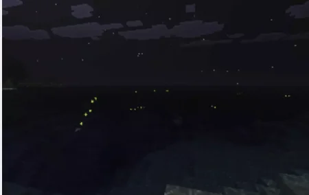 In survival, Fireflies Mod is perfect for players who like making safe routes and scenic rest stops. A lit-up river path with fireflies drifting over the water just looks clean, and it makes travel feel less like a chore. In multiplayer, it’s an easy vibe upgrade too—people end up gathering at water builds more often because it looks cool at night, and it turns simple hangout spots into actual “meet here after dark” locations. If you’re into screenshots or build showcases, fireflies also make nighttime shots way less flat, because the water areas finally have motion and life.