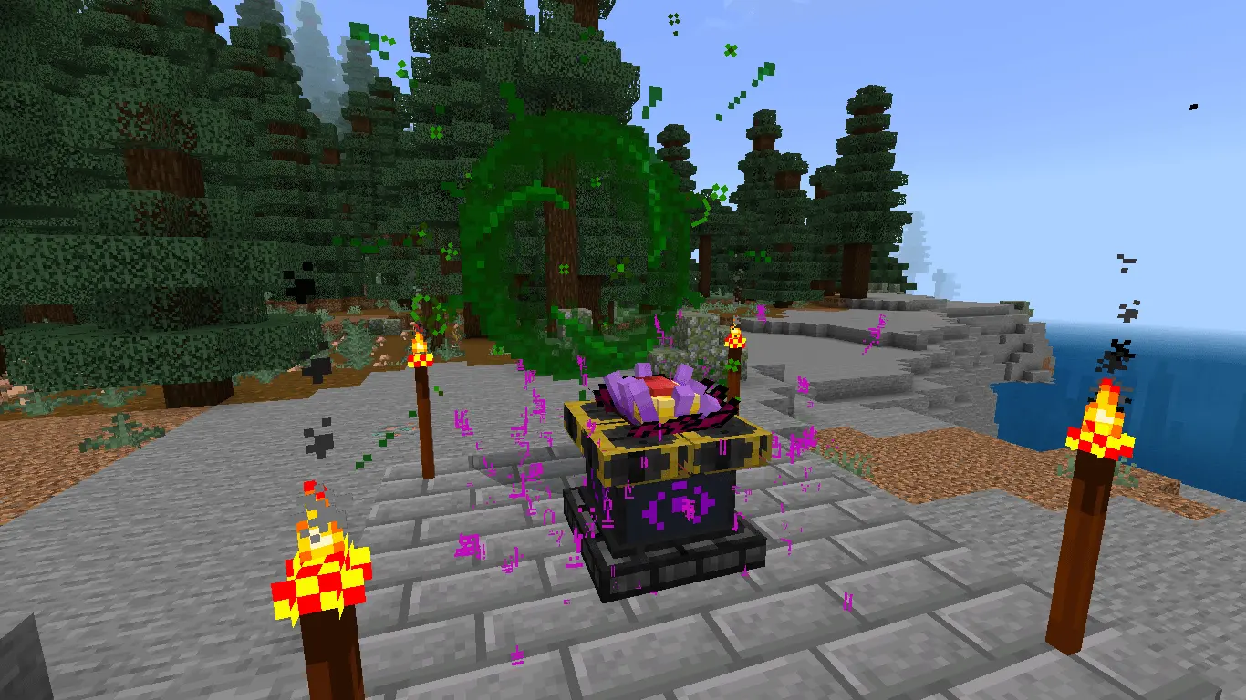 The addon also tosses in new gameplay mechanics that make combat feel different instead of just stronger. Battle axes can be thrown, some large weapons have long-range attacks, and there are utility mechanics too: salt repels phantoms, a new Litchurgo rose repels large insects, and there’s a new magic table used for crafting ultimate items and transmuting armor. That magic table is a big deal because it implies progression isn’t only “find ore, craft gear,” but also “unlock the next tier through a special crafting system,” which fits the fantasy/Terraria vibe hard.