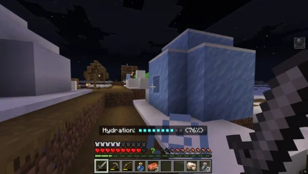Hydration Logic Mod adds a real thirst loop to Minecraft Bedrock by putting a hydration bar right above your hotbar in the Actionbar, and it forces you to actually think about how you move and where you travel. Thirst drains over time, but it drains faster when you sprint, and it gets even more punishing if you’re hanging out in the Nether. That means your usual “run everywhere, fix later” playstyle starts costing you. If you ignore it and your thirst hits 0%, the mod doesn’t just nag you—your character gets Slowness and Nausea and you’ll start taking damage over time, so you’re basically forced to stop, recover, and play smarter instead of brute-forcing every trip.