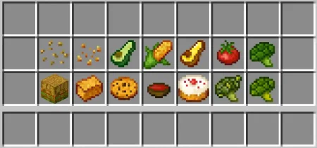 On the food side, Crops Overhaul (More Crops) Mod leans into variety. Corn can turn into multiple items like cornbread, a corn cookie, and a corn cake that works like vanilla cake, except it doesn’t have the candle functionality. There’s also a corn bale, which fits the whole “farming build” aesthetic when you’re decorating barns, markets, or storage areas. Tomatoes come with their own seed and a tomato soup option, which makes them feel like more than just a filler crop. Avocados get a golden avocado variant, which is the kind of item that feels like a special upgrade once you’ve got a steady farm going. Broccoli has both baked broccoli and poisonous broccoli, which makes it a little more chaotic than the other crops and adds that “don’t just eat everything blindly” vibe to your food stash.