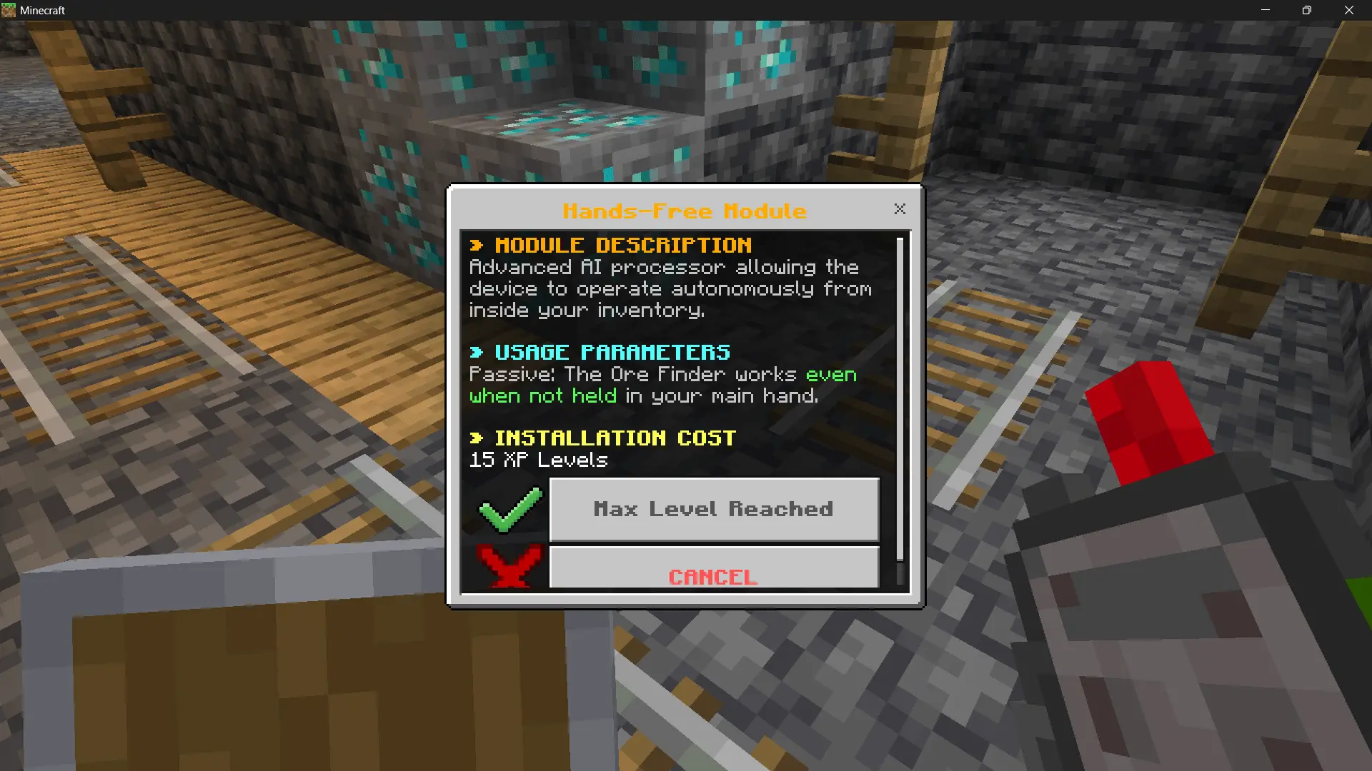 In real play, Ore Finder Mod – "Advanced Ore Scanner" shines when you’re doing focused missions. Maybe you’re gearing up and need specific ores fast, or you’re building something that eats resources and you don’t want your whole session to be spent wandering in circles. You pull out the Ore Finder, scan the area, follow the sound and UI cues, and commit to the dig with way more confidence. It’s still Minecraft Bedrock mining at heart—work, risk, and planning—but the scanner makes the loop cleaner, faster, and more satisfying, especially when you want a server-friendly ore finder addon that doesn’t wreck the game’s vibe.