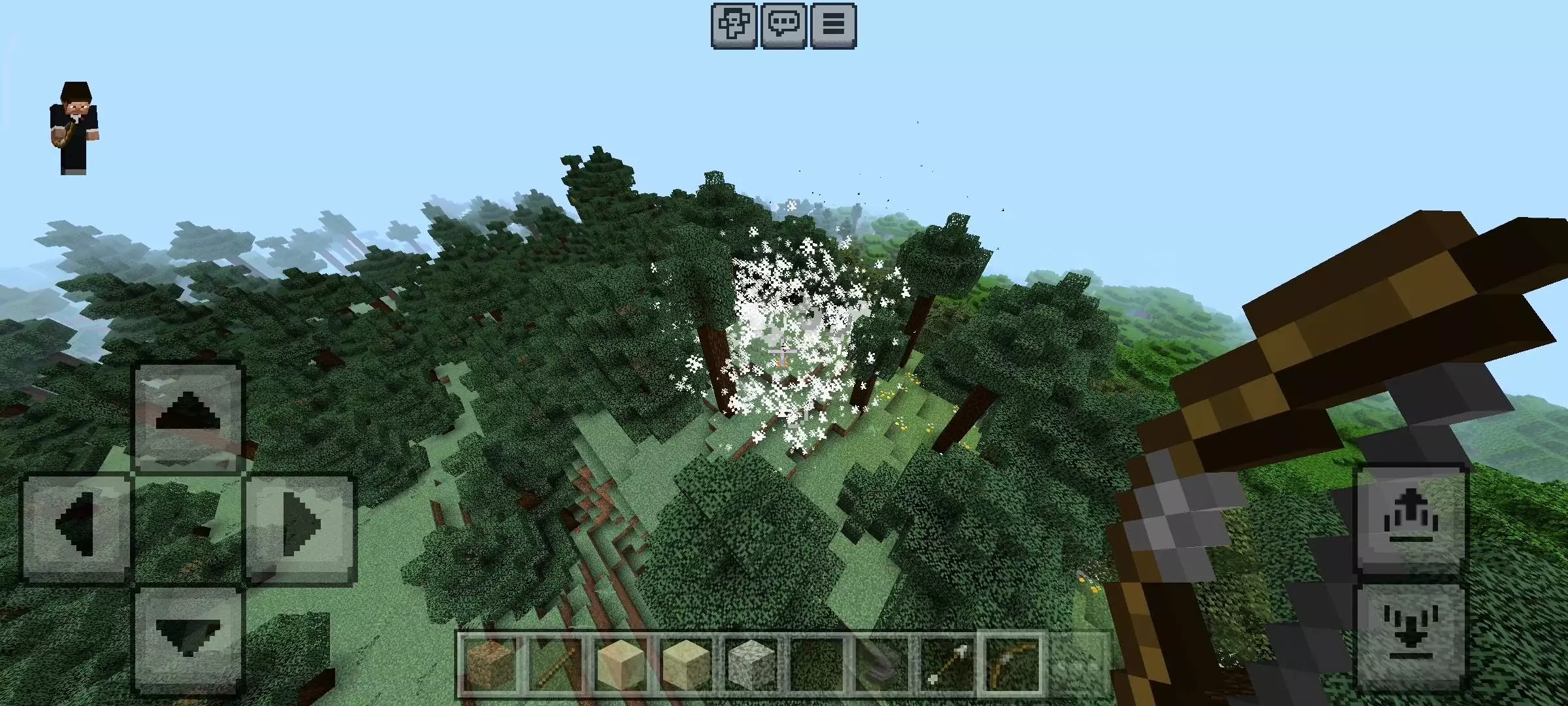 The mod is built around two power levels so you can choose whether you’re playing “useful survival tool” or “total destruction mode.” When you first install it, you’re in Grenade Mode by default, and the bow behaves like a grenade launcher. You shoot an arrow, it hits, and a small explosion pops right on impact. The point of this mode is that it’s strong without being world-ending. It’s described as safe enough for stuff like mining ores or clearing trees, and it can drop zombies in one hit without turning the whole area into a crater. In a normal survival session, that’s the sweet spot: you get quick utility and faster fights without accidentally deleting your own progress because you got trigger-happy near your base.