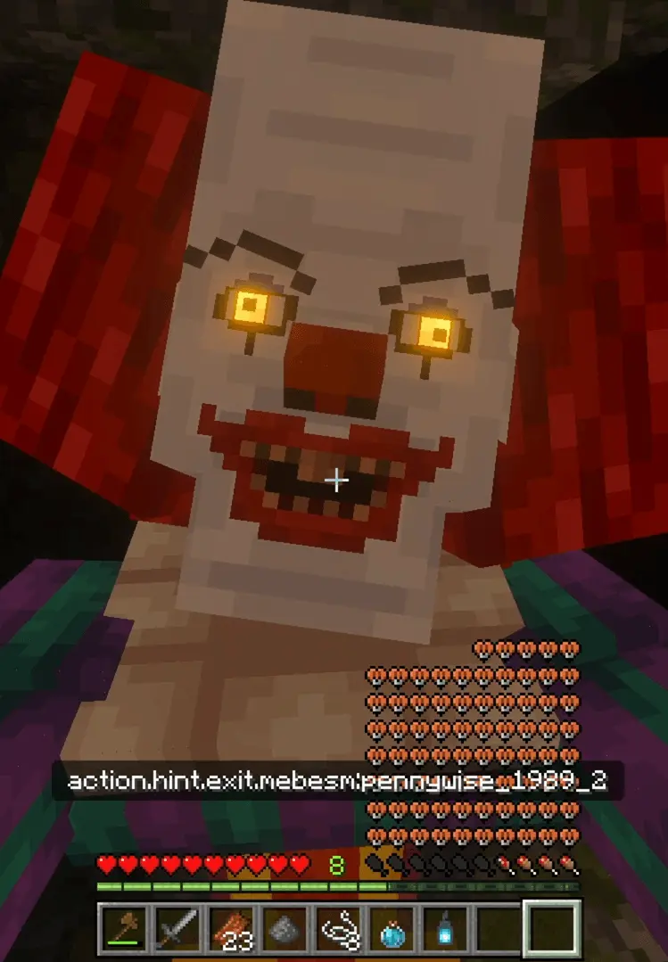 For players who want the biggest fights, the mod includes major boss encounters for Pennywise 2017 and Pennywise 1989. The 2017 boss is framed as a full horror sequence that forces nightfall and runs through multiple forms with custom animations, new attack patterns, and escalating difficulty, including named forms like Bloody, Human, Tentacle-Armed, and a final Spider-style form. The 1989 boss is tied to the sewer, cycles through its own set of forms, and can drop a rare hand artifact that boosts your melee damage if you keep it in your first hotbar slot, matching the “carry a cursed trophy” vibe. Structurally, the world is supported by dedicated locations like the Hospital in plains, Sewerage near the sewer, the music box structure, and a statue structure, so your survival run becomes a mix of exploration, event triggers, and boss prep instead of the usual routine.