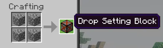 It also has a Drop Setting system, which is low-key powerful for servers or grinders. You craft a Drop Setting Block, then stack blocks on top of it to disable drops for those blocks. You can save presets on the Drop Setting Block, and those presets work with a special break profile called “Item Drop Ignore” (so you can mine without flooding your inventory with junk).