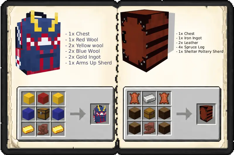 The Extra Storage upgrade is the simple one: it adds extra pages inside your backpack so you can carry more. When the backpack is placed, you’ll see arrows inside it, and you click those arrows to flip between pages like you’re scrolling through a little pocket inventory book. That’s huge for long mining trips, structure looting, or big building sessions where you’re constantly picking up random blocks and don’t want to run home every ten minutes.