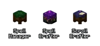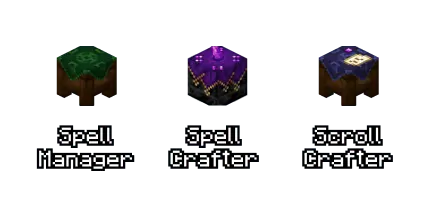 Spells are found naturally on scrolls inside structures, so exploration actually matters if you want more options. You can also craft scrolls using a special block called a Scroll Crafter. Scrolls can cast one spell, but they cost mana and they also have durability, so they won’t last forever. That keeps scrolls feeling like a real survival tool: strong, useful, but not something you spam endlessly for free. If you get tired of scrolls breaking, that’s where the Spellcrafter comes in. You can combine scrolls into a spellbook, and spellbooks hold three spells total, which is the sweet spot for making a “loadout” without turning it into a giant hotbar of magic. Three slots means you can build combos—maybe one combat spell, one status setup, and one mobility escape—or stack spells that play off each other in different ways.