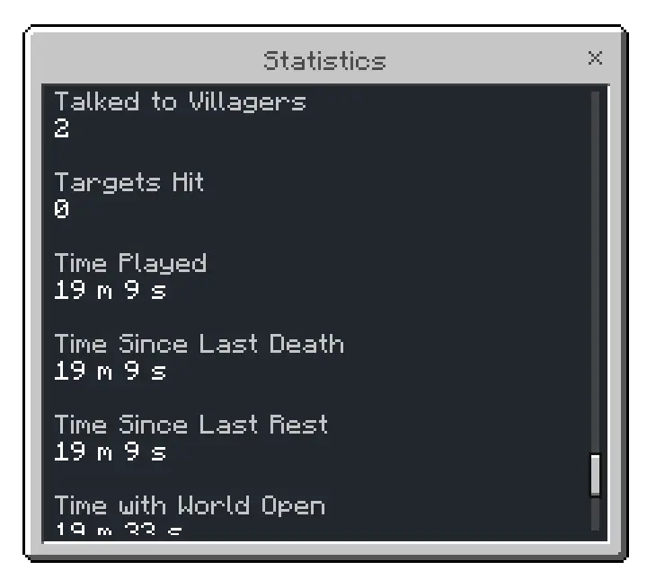 Bedrock Statistics [v1.21.100+] Mod — clean stat tracking for MCPE with a copper-focused update, readable icons, and fresh XP metrics that actually help your survival grind.