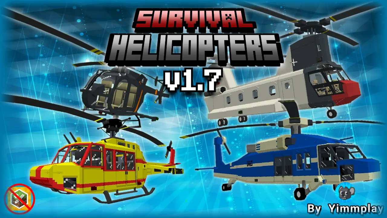 This Bedrock addon brings proper rotor travel to survival without breaking the vibe of starting small and earning range. You build your chopper, feed it fuel, and suddenly that far village, ocean monument coastline, or mountain base is a few smooth minutes away instead of an all-day slog. The handling is friendly if you respect it: feather the climb, level out early, and keep a steady heading rather than yanking the stick. Once you get the feel, the world shrinks in the best way—supply routes tighten, scouting is safer, and rescue runs stop turning into second deaths.