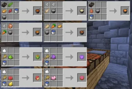 This addon doesn’t bury you in fantasy crops or weird machines. It leans on what Minecraft already gives you and turns it into sixteen new dishes that actually change how you plan a day. You fish at dawn for cod and salmon, skim kelp beds off the pier, raid the pantry for carrots, mushrooms, potatoes, and eggs, then craft meals that feel different in your hands. Some plates eat fast, perfect for topping off hearts while you’re sprinting between mobs. Others chew slower but load you with better saturation so the hunger bar stays quiet through mining shifts, raids, and nether runs. Because everything starts with vanilla inputs, it slides straight into survival without breaking balance or disabling achievements.