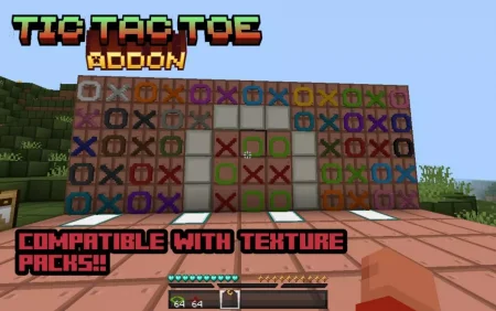 This add-on brings a clean, playable Tic Tac Toe board straight into Minecraft, and it’s way better than scribbling with wool on the ground. Place the board where people actually hang out—by the map wall, near the market street, at the end of a dock—and it becomes a magnet between adventures. Interact to start a round, pick your mark, and trade turns without clumsy chat rules or item juggling. Because the footprint is tiny, you can fit it in any base or lobby and it won’t mess with traffic. On Realms and servers, it shines the second someone types “best of five?” and half the town drifts over to watch.