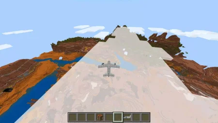 Logistics is where the cargo plane shines. Stage shulker boxes or barrels just inside the bay and load like you would a real run: tools and food up front for quick grabs, building blocks aft, valuables in a labeled crate you always keep on you. If the addon supports onboard storage, great—use it. If not, the “mobile warehouse” still works with containers you place and pick up, because your flying time is the multiplier. Do a morning hop to the quarry, top off stone and copper, swing over a village for trades, and be home with daylight to spare. On long legs over water, fly a touch higher than treetops so new chunks stream smoothly; on mobile, keep render distance sensible so the prop animation stays crisp when you pass the shoreline.