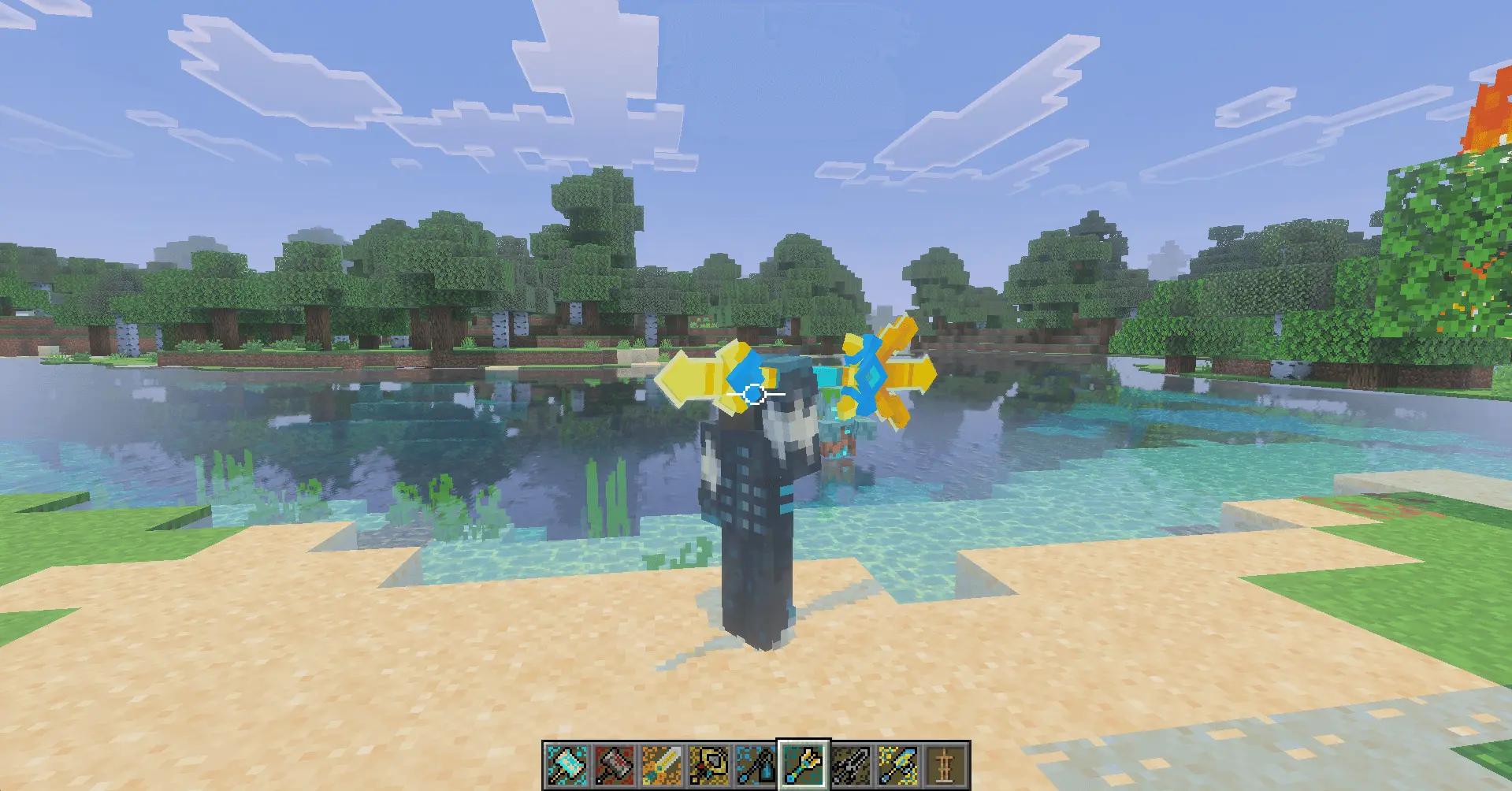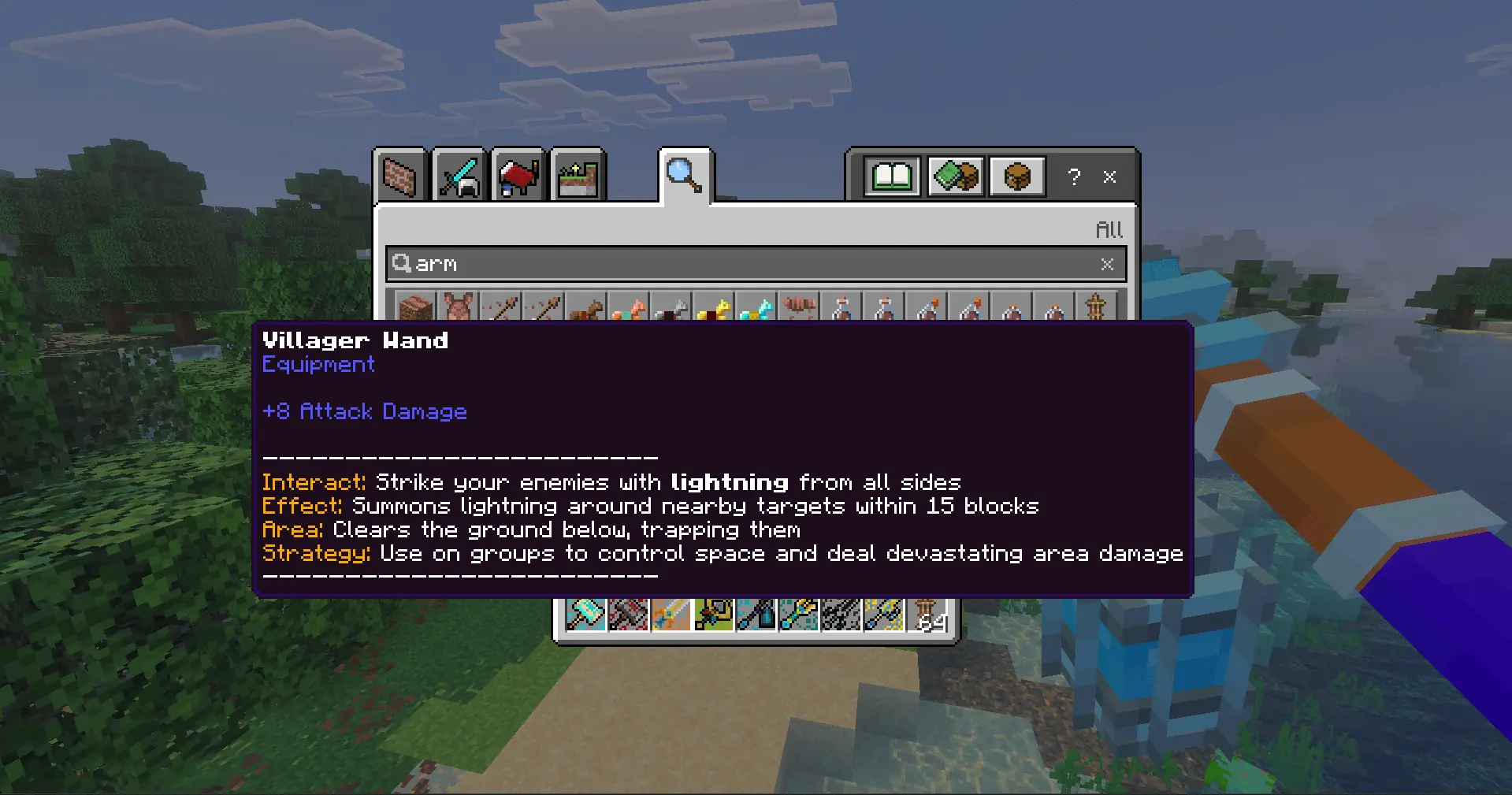 Early game, treat the forge like a roadmap. Gather, craft, test a blade on mobs, then upgrade into a second pick for a different lane. Names you know—Aiglos, Golem Hammer, Midas Sword, Mjolnir, Poseidon’s Trident, Sculkweaver Lantern, Shadow Blade, Villager Wand—each land with a distinct feel, and the mod makes you learn them the fair way: by actually using them. Keep a spare chest near your arena or village gate for quick swaps, and label hotbar slots so you’re never fat-fingered when a duel starts. In survival, the same kit doubles as boss control and cave security; you don’t need a separate “PvE loadout” when your weapons already carry their weight.