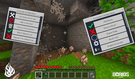 Dorios’ Excavate Mod — carve smart tunnels, drop whole trees, and rip ore veins clean with zero grind and full control.