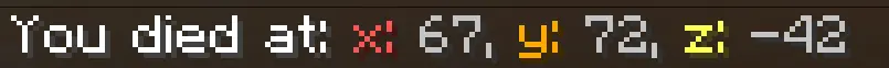 In survival, it changes how you move. After a messy ravine slip, you respawn, glance at the numbers, grab a bucket and a handful of blocks, and retrace with purpose instead of guessing which tunnel “felt right.” On Nether runs, the readout keeps you honest about height while you bridge over lava, and that tiny Y correction is often the difference between a clean recovery and a third trip. In the End, it’s a sanity saver when you’ve been circling an island chain; the overlay doesn’t care about your sense of direction—it points you back to where it happened, full stop. Because the coordinates vanish within a few blocks of the site, you get the satisfaction of “found it” without extra clutter hanging around afterward.