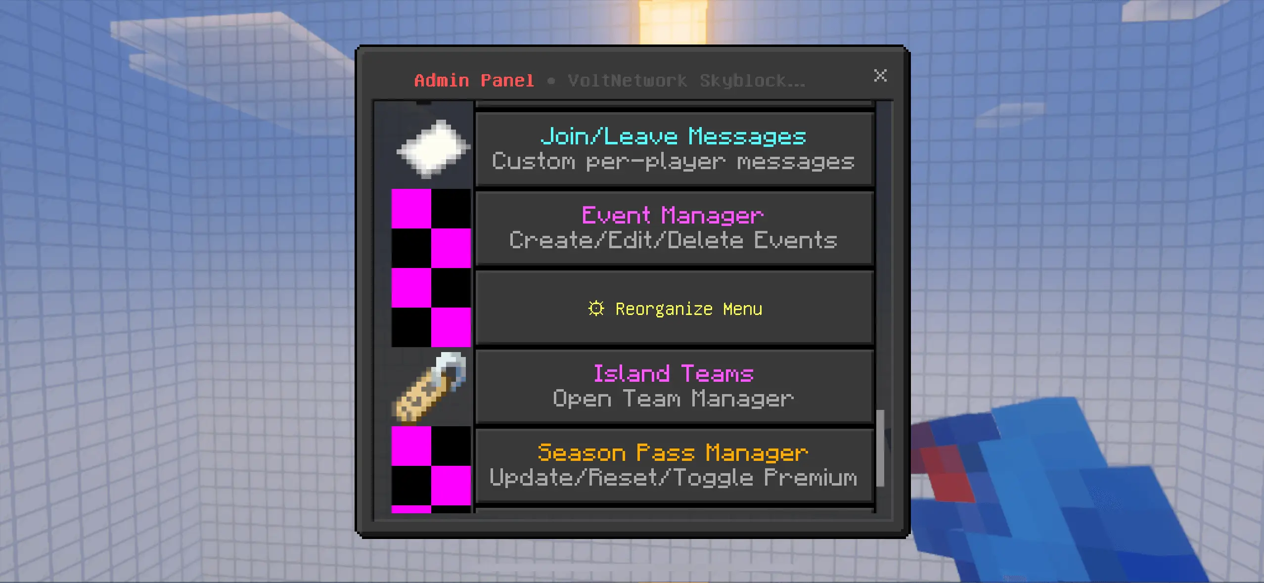VoltNetworks Skyblock GUI Mod — a sleek, menu-driven Skyblock that turns tiny islands into real progression runs built for Bedrock, Realms, and big servers.