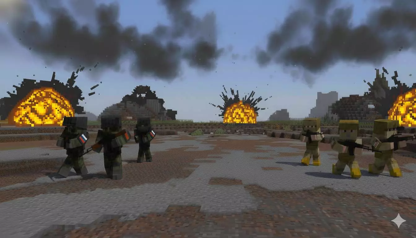 It shines when you treat your map like a living theater. Mark sectors with banners and dye armor to keep factions readable in the chaos. Lay down sandbag lines and jersey barriers to shape sightlines, then light intersections so friendlies can collapse onto a call without guessing routes. In downtown ruins, push block by block—short sprints, door checks, quick resets—then pull back to your FOB and log the win in a command tent that actually looks the part. Jungle arcs want patience: machete a path at noon, stash med kits in shulker crates, string lanterns for a night exfil, and let the soundscape carry the dread while you ghost between trees. Desert combat rewards tempo control—kick dust, break LOS with low dunes, and time your pushes between gusts so shots feel earned.