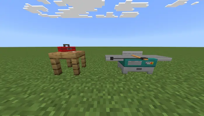 Drop into a fresh world and set up a tiny shop corner before the first night. Cut your first boards at the stonecutter, craft the Carpenter Workbench, and that’s your launchpad for everything else. The loop stays survival-honest: gather wood, feed the bench, and shape pieces without commands or gimmicks. When a design calls for sturdier joinery, make screws and slot them into builds that need a little extra structure like dining tables or frame-heavy chairs. Recipes live in the green book you already use, so you’re never guessing—flip it open, check the parts, and keep your hands moving.