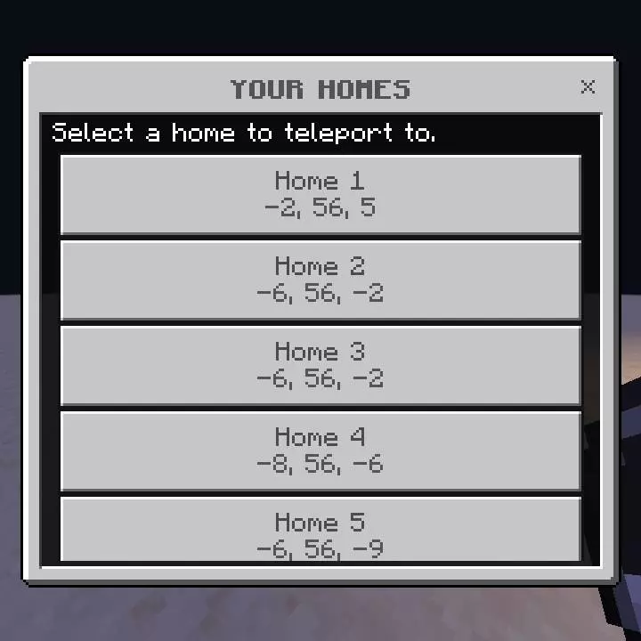 Each home you save stores exact coordinates plus the dimension it belongs to, so bouncing between an overworld base, a fiery nether tunnel hub, and a remote end island becomes a routine rather than a gamble. Instead of typing clunky commands or writing down numbers on your phone, you just stand where you want, open the menu, and lock that location into an empty slot. Later, when you’re done mining, raiding, or exploring, you pull out the same compass, pick the home you want to return to, confirm, and the addon handles the jump. The UI is built with clear forms and confirmation steps, so you always know what slot you’re editing and where you’re about to land.