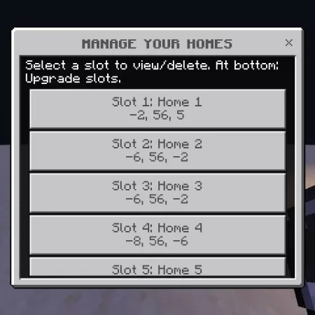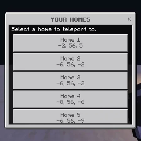 Because it’s fully menu-driven, new players who have never touched command systems can use it instantly, and more experienced players finally get a structured, reliable alternative to chat teleports. Whether you’re running a quiet solo survival or a co-op world with a couple of friends, Save Your Location | Home Mod turns getting around from “hope I remember the path” into “open the menu, pick the slot, and get back to building in seconds.”