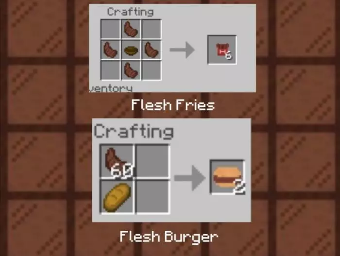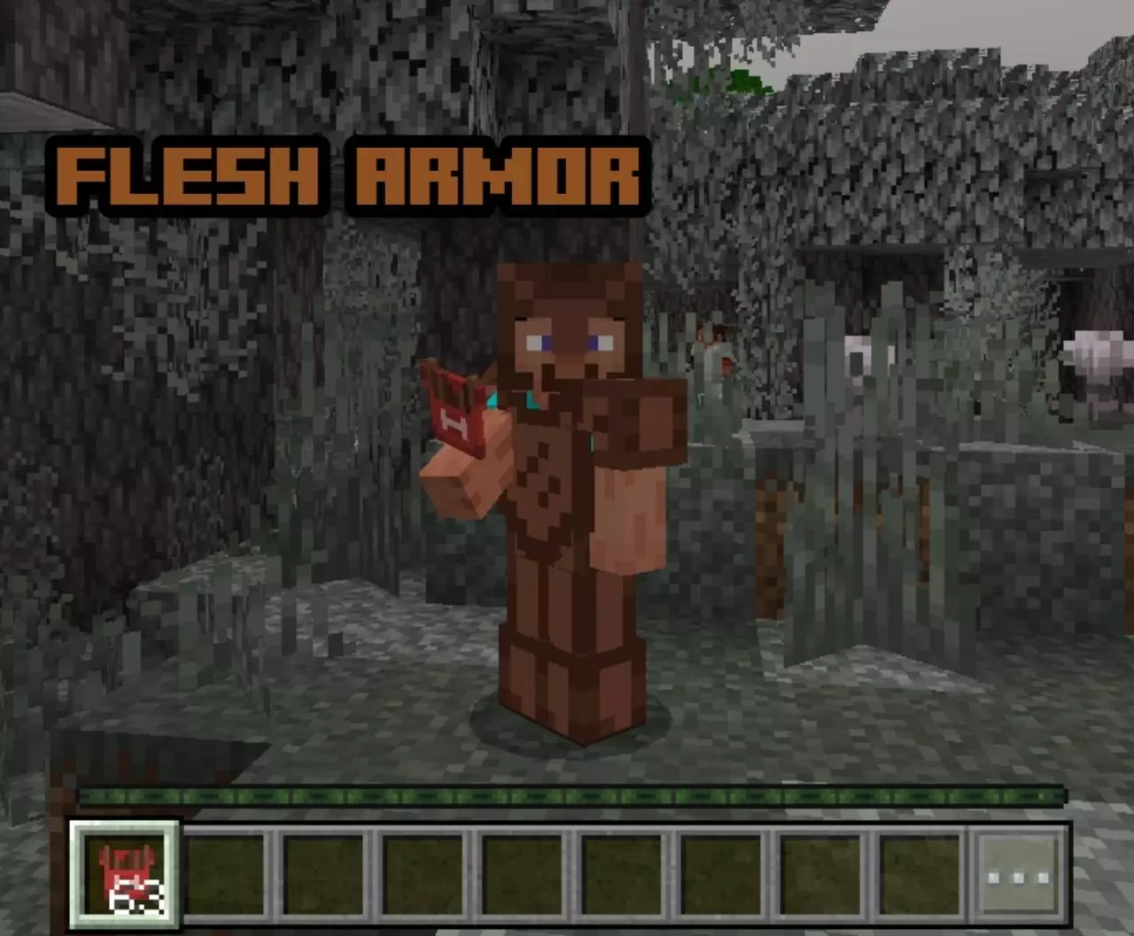 The mod doesn’t stop at food, either. Flesh can be compacted into flesh blocks that you can stack, decorate with, or use as part of full-on horror builds. Imagine a “meat vault” under your base, a creepy hallway in an adventure map, or a dungeon where the walls are literally made out of past runs gone wrong. It’s gross in concept but very on-theme if you like making scary maps, apocalypse worlds, or twisted labs. Survival players can decide whether to treat flesh blocks as trophies, storage, or just that one building material nobody really wants to admit they’re using.