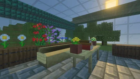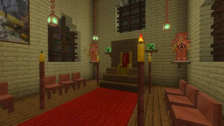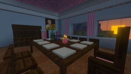 QB Furniture Mod is all about decorating without breaking the vibe of a normal Minecraft world. Everything is made to blend in whether you’re grinding survival or just speed-building in creative, so you don’t get that “this looks modded” clash when you drop a chair into a wooden cabin or a throne into a castle hall. The core lineup is straightforward but deep: tables, wall-mounted shelves, and three types of seating, with interactions that make the furniture feel usable instead of being pure decoration. You can sit on any seat by interacting with it, and tables have a fun extra touch—interact with a table and you can crawl beneath it, which is perfect for little hidey spots, roleplay rooms, or just messing around in a friend’s base.