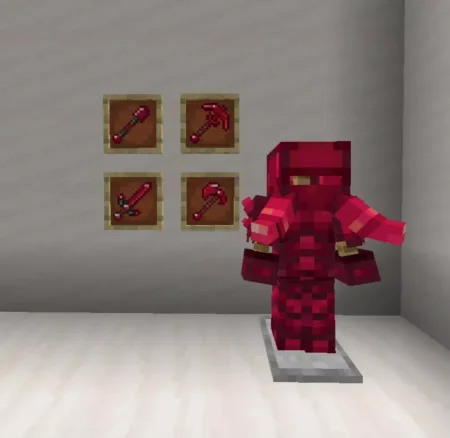 It also goes beyond just dropping shiny rocks into the ground. More Ores And Tools Plus Mod adds full tool and armor sets for each ore, which is exactly what a survival expansion should do. You are not mining materials just to look at them in a chest. You are turning them into gear that changes your day-to-day play. There are also new storage blocks and crafting recipes, which is a nice quality-of-life layer because it means the addon is thinking about how players actually organize resources and use them, not only how they collect them. The custom armor models and textures help too, since new armor feels way better when it actually looks like its own thing instead of another recolor you forget five minutes later.