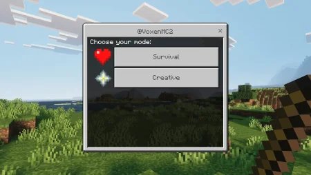 What makes Creative Mode Mod feel practical is how direct it is. It does not ask you to memorize a bunch of weird steps or manage some giant control system. You just get a stick, either from your inventory or from a tree, hold it, and use it to open the menu. On PC that means right-click, and on mobile it means a long press. From there, you tap the Creative button and switch instantly. When you are done, you use the same stick again and swap back to Survival. That makes it easy to treat Creative like a temporary tool instead of a permanent world decision. Need to fly up and fix a roof? Switch. Want to place a lot of blocks fast and keep the build moving? Switch. Finished? Go right back to Survival and keep playing.