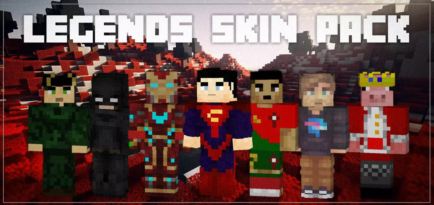 Legends Skin pack [25 skins!] Addon has many new skins, these will be very popular skins of super heroes and favorite characters.