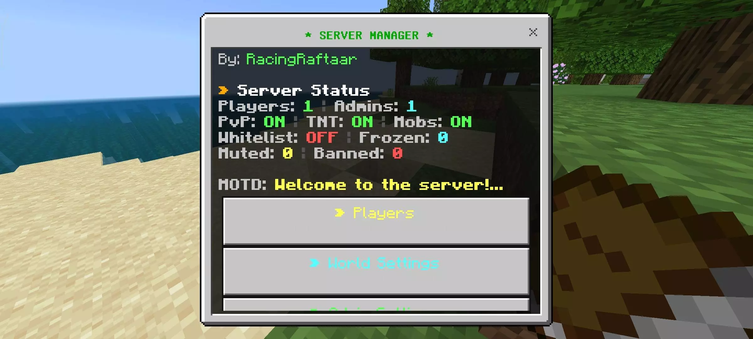 Server Manager Minecraft mod for admins and server owners, it is needed to manage it.