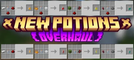 New Potions Overhaul Addon skay4eg Today, 13:40 7 Mods / Mods 26 [1.26] New Potions Overhaul Mod will add many new potions to the crafting game.Installation:— Download McPack— Install McAddon or McPack files, just open it for this;— Select new textures in the settings;— Done.new_potions_overhaul_rp.mcpack [116.84 Kb] (downloads: 0) new_potions_overhaul_bp.mcpack [122.43 Kb] (downloads: 0) Recommended Content: