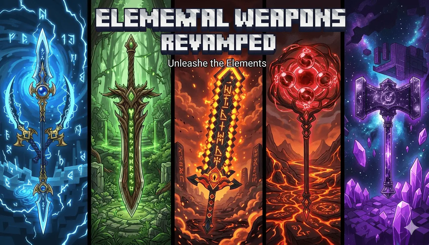 Elemental Weapons Revamped - download Minecraft addon and get more better weapons.